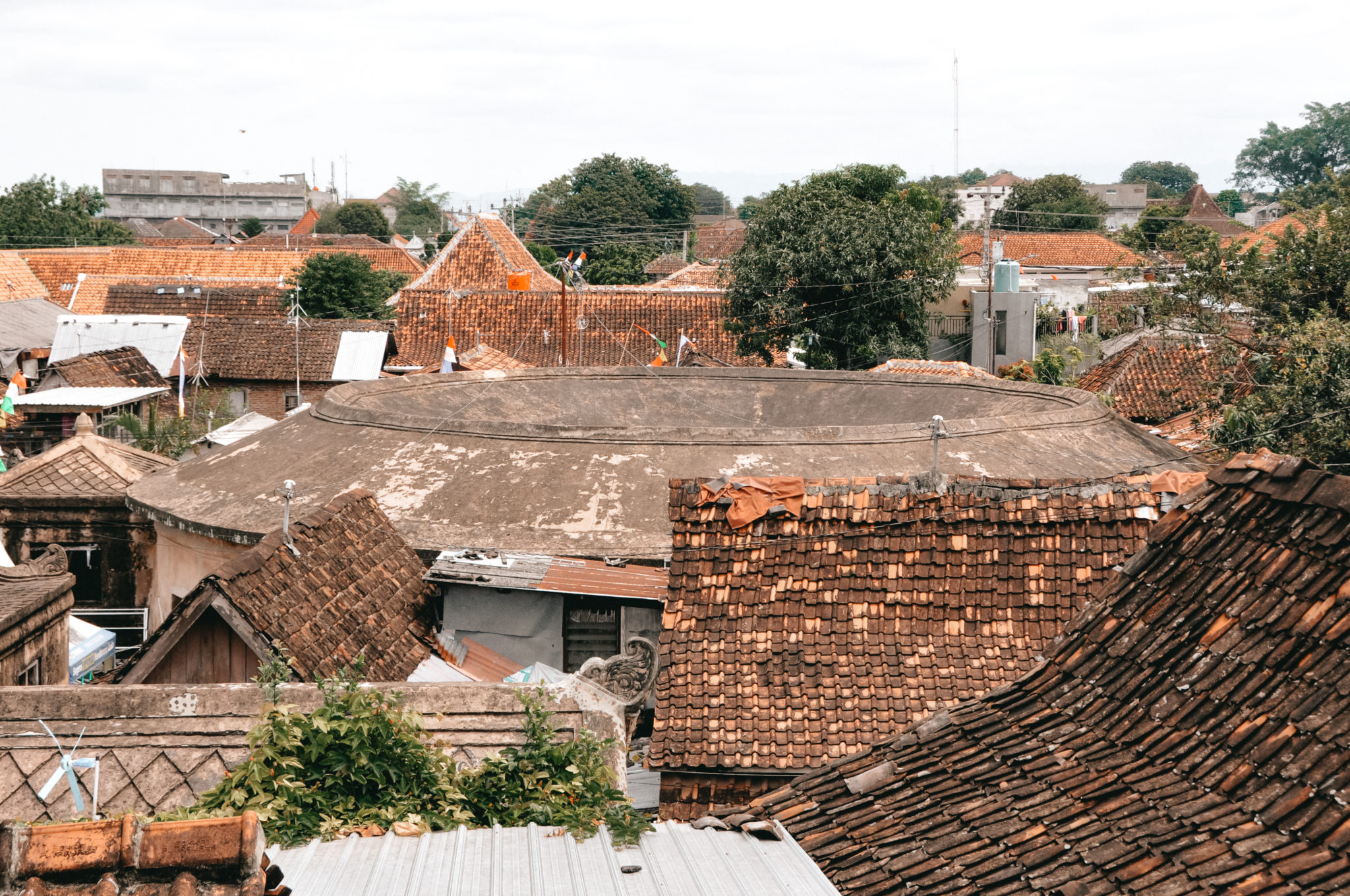 - View of the Underground Mosque and Yogyakarta from the Pulo Cimeti castle ruins