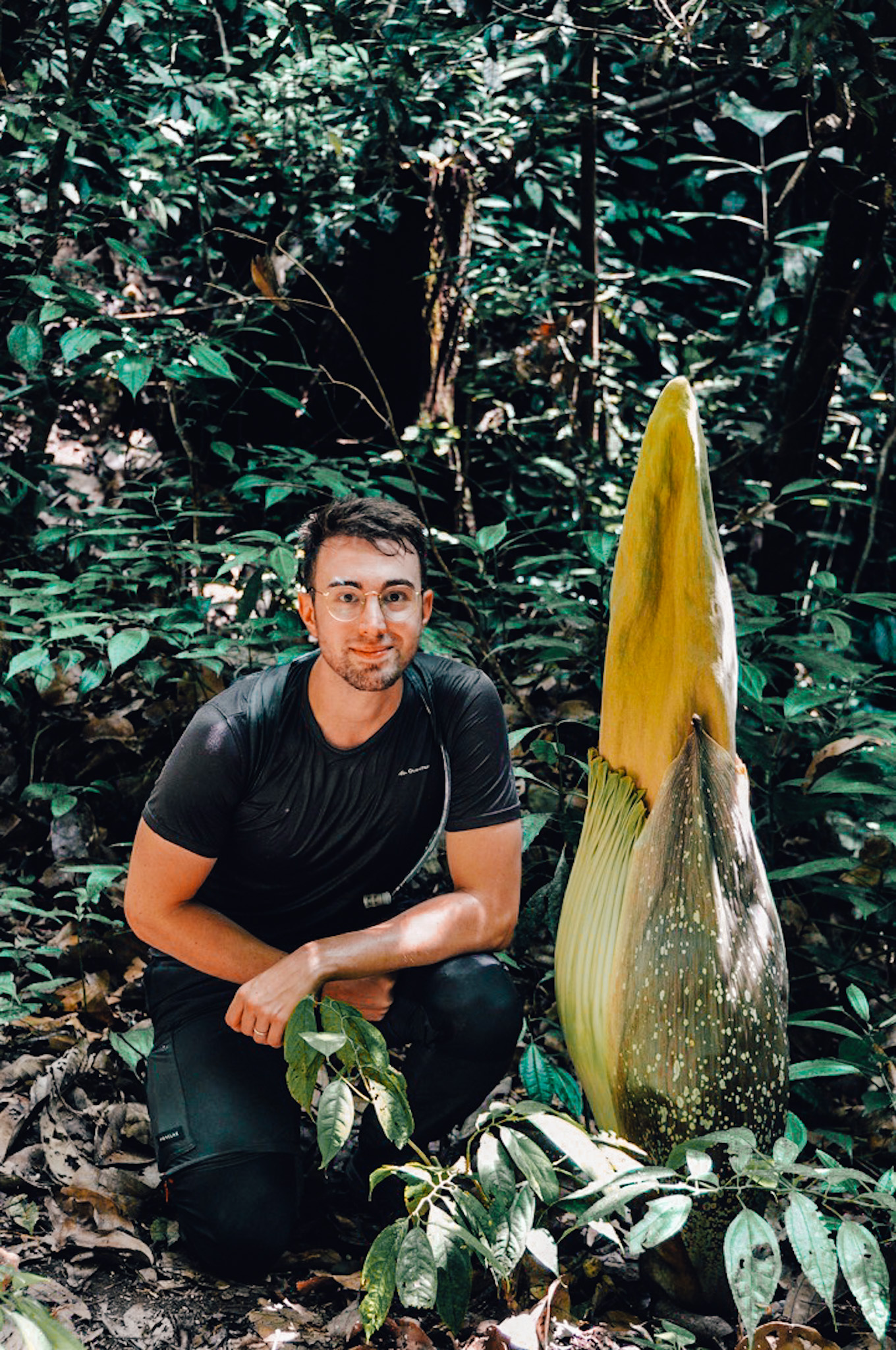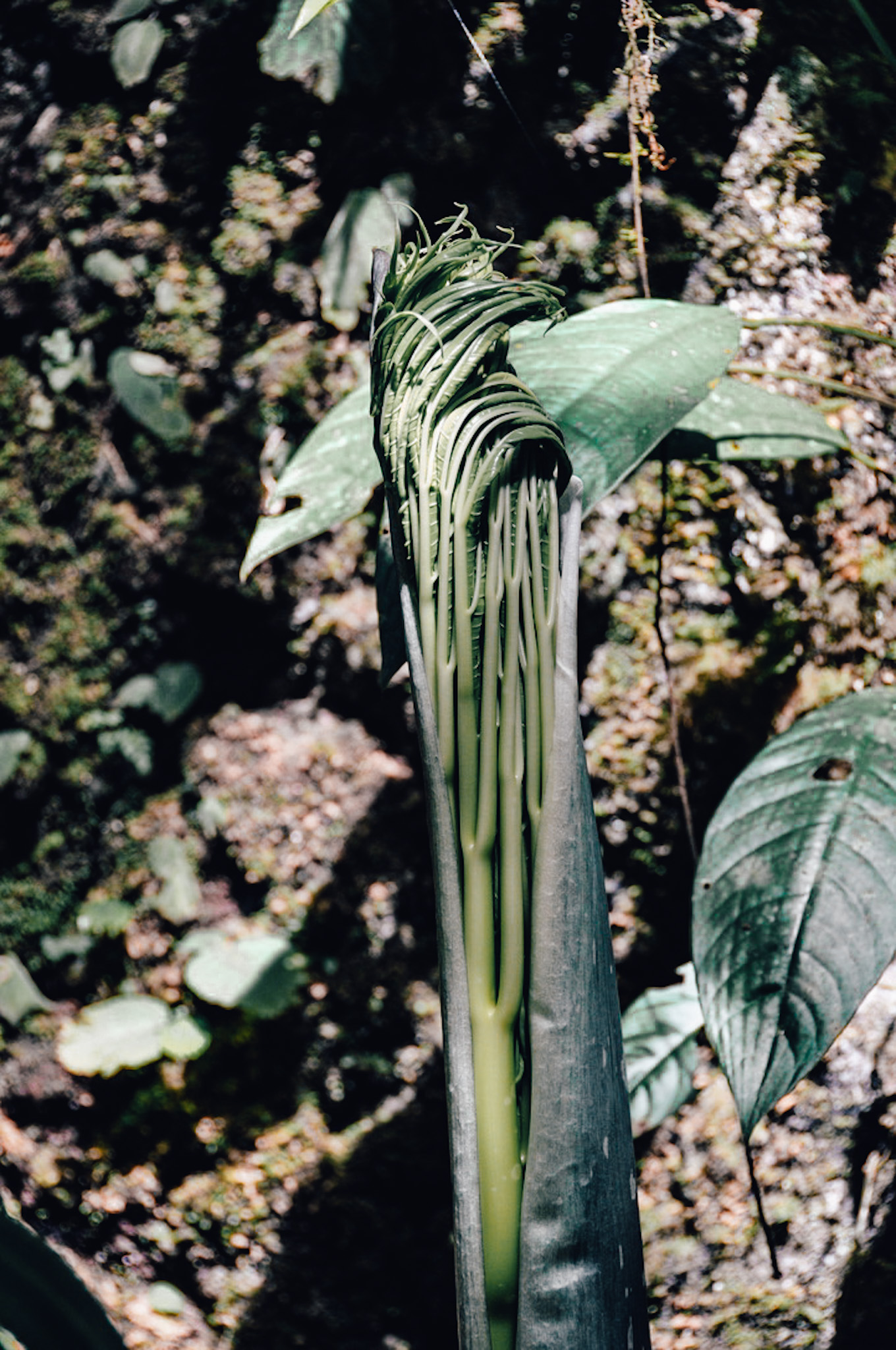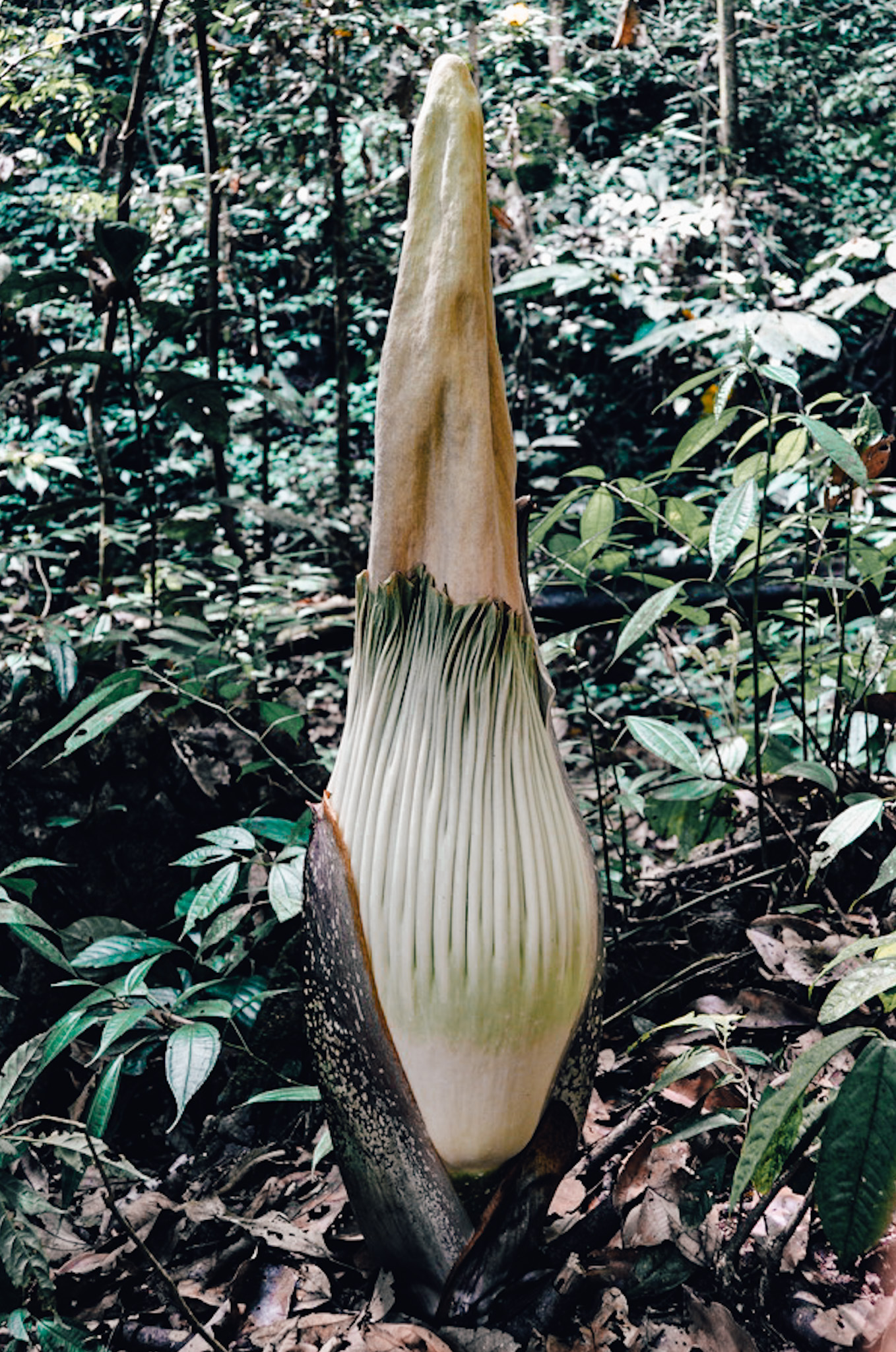 This was obviously the highlight of the day. It was incredible to see wild orangutans, so close, and with a baby to top it up! The rest of the afternoon we spent trekking down the karst forest, when we found another rarity. A titan arum (Amorphophallus titanum), also known as corpse flower. This is the tallest flower in the world and only found in Gunung Leuser in Sumatra. These flowers bloom very shortly and unpredictably, so it was another round of luck for us. This one was not even in full bloom and you can see the size in the picture below (I am 6’3″ or 1,93m).