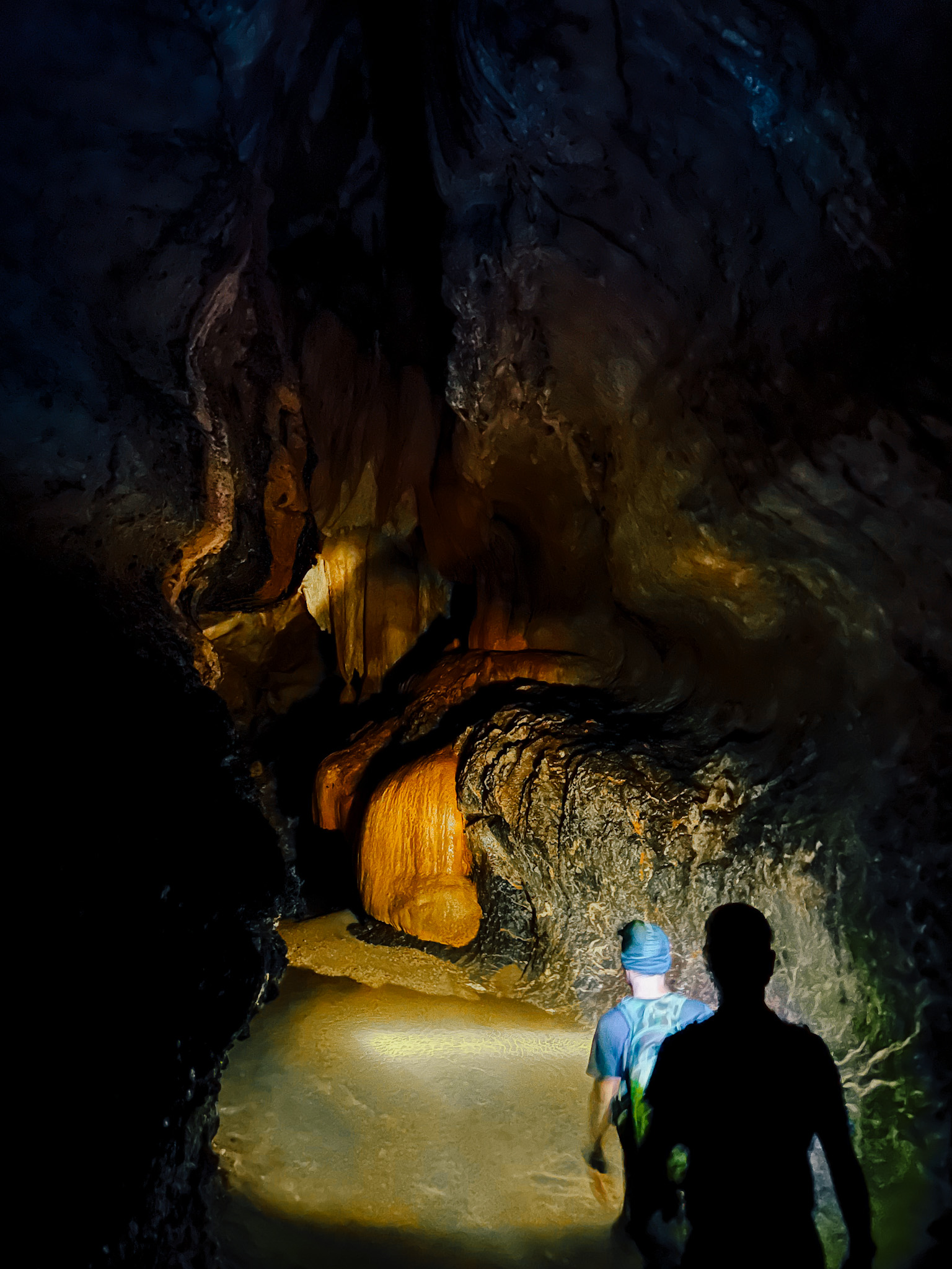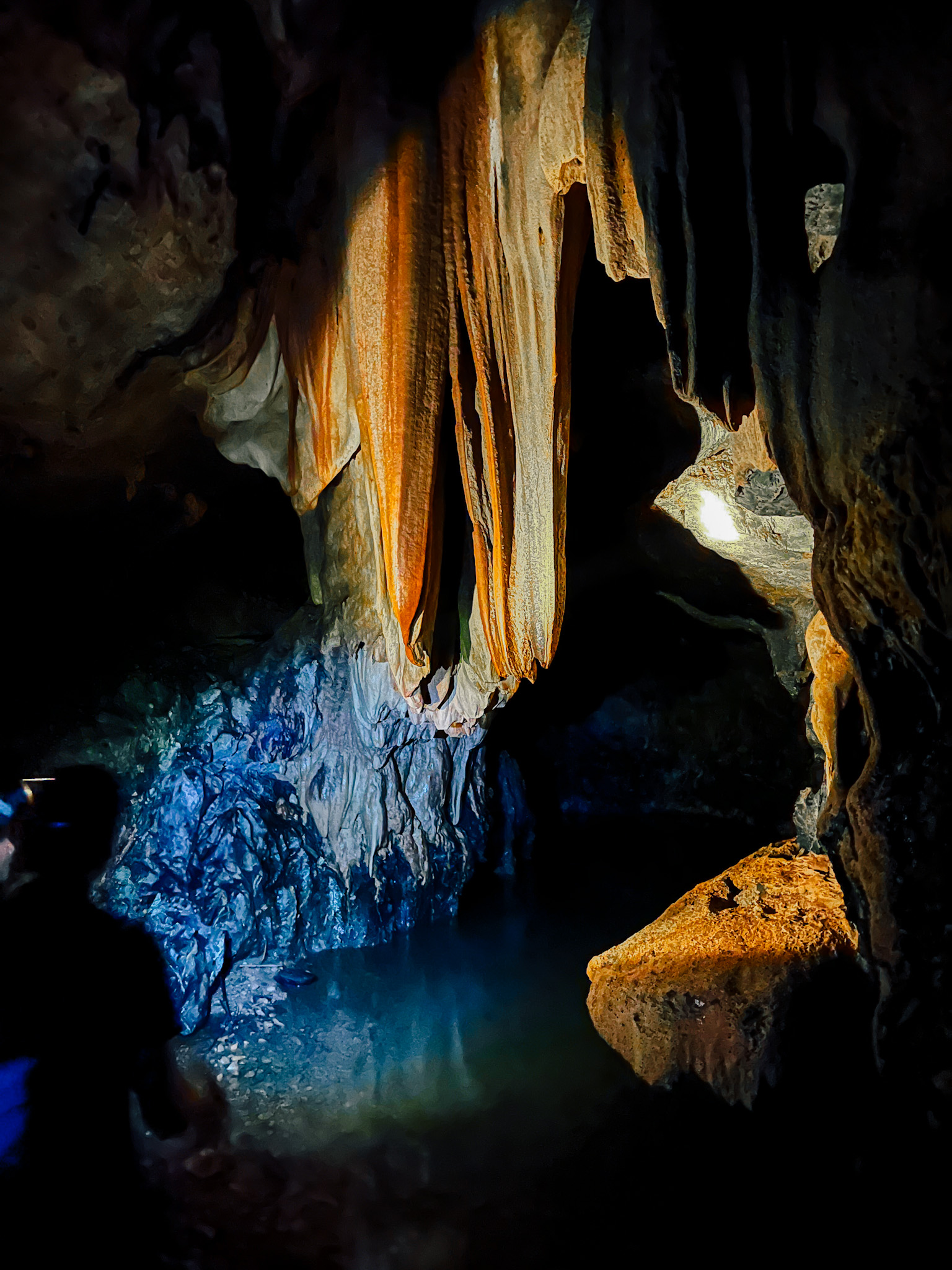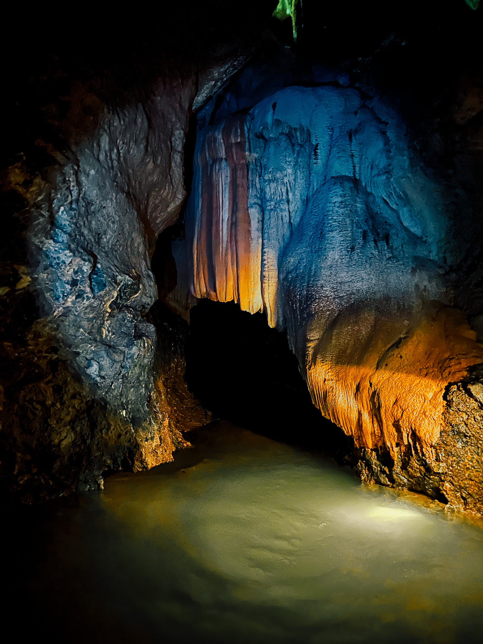 We arrived to the entrance of the cave around 11 am, when we saw 2 more orangutans, although this time a bit further away. We had lunch and coffee before heading in the cave. The term “Water Cave” is not coined losely. We were knees deep in the water inside the cave most of the time from start to finish. Being a karst, the shapes and colours of the rock at the entrance were already quite surreal.