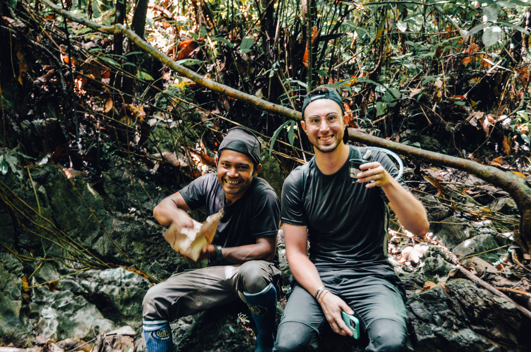 We arranged two days of jungle trekking with Orchid Bungalow with our guides Mariadi and Inra. The first objective was to see some wild orangutans, which is quite difficult because of how elusive they are and because in the dry season their favourite fruit is not often found around the village. They warned us before starting that we would probably not see any.