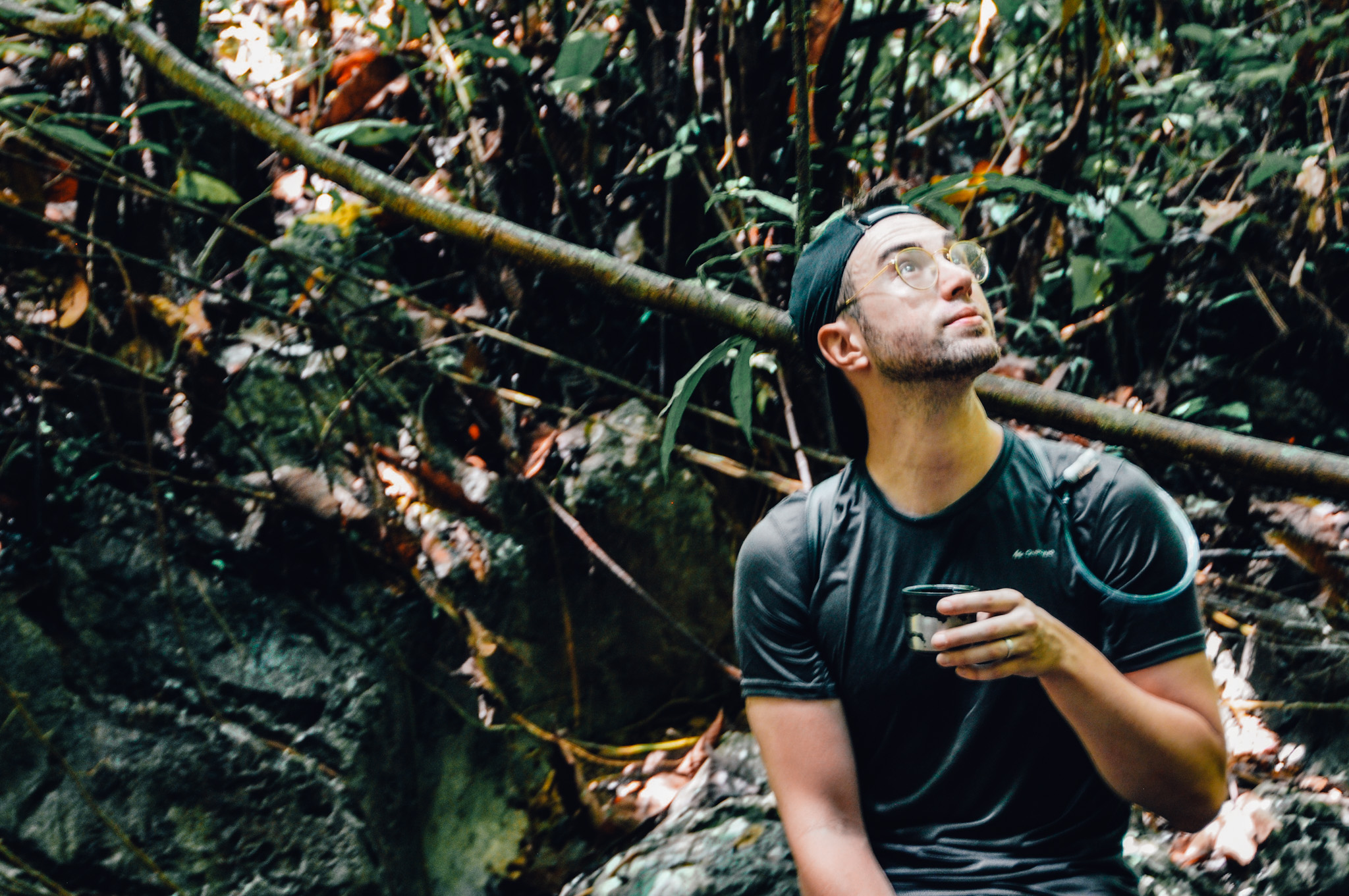 When we reached the end we were starting to feel a bit uneasy to be so long in the dark and under tons of solid rock. And then Mariadi showed us the exit, which was basically a tiny hole on the ground. I am a big guy, so you can imagine my reaction. Luckily after a quick moment of flash claustrophobia the hole opened up and we went out of the cave in a nice river bend in the lush jungle and saw the sun again.